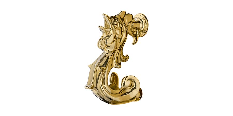 The Meiss door knocker is a depiction of a crowing rooster. This door knocker will be incredibly beautiful on all kinds of doors. Meiss is crafted in brass, but it is also available with a chrome or nickel finish.